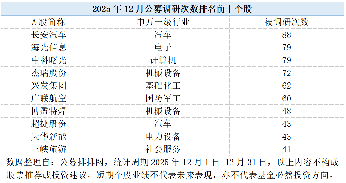 2025年12月公募调研热情高涨,积极为2026年布局做准备。根据公募排排网数据统计,当月共有155家公募机构参与A股调研,涉及29个申万一级行业中的451只个股,合计调研次数达3472次。