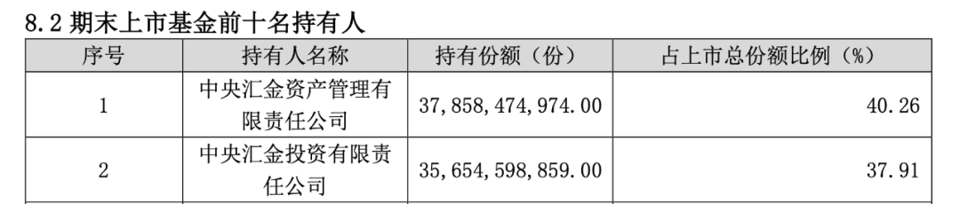 以全市场规模最大的ETF产品华泰柏瑞沪深300ETF为例,三季报显示,“机构1”“机构2”三季度持有华泰柏瑞沪深300ETF的数量保持不变,仍为378.58亿份、356.55亿份,这与2025年基金中报披露的中央汇金资产管理有限责任公司、中央汇金投资有限责任公司二季度末的持有数量保持一致,可见“机构1”即为中央汇金资产管理有限责任公司,“机构2”即为中央汇金投资有限责任公司。